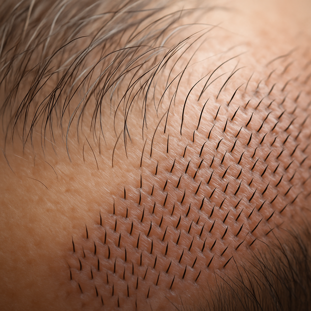 La tecnica FUE non prevede l’asportazione di una striscia di cuoio capelluto come nella FUT, ma un prelievo singolo follicolo. Questo significa che nell’area donatrice restano micro-esiti puntiformi, generalmente poco visibili a occhio nudo se il prelievo è eseguito correttamente e se il rapporto tra area donatrice e numero di unità follicolari prelevate viene rispettato. La visibilità può cambiare in base al taglio dei capelli, al colore della cute, alla qualità della guarigione e alla tecnica utilizzata.